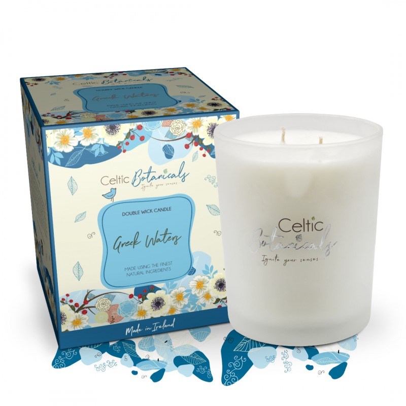 Transport yourself to the idyllic shores of Greece with the Greek Waters double wick candle.