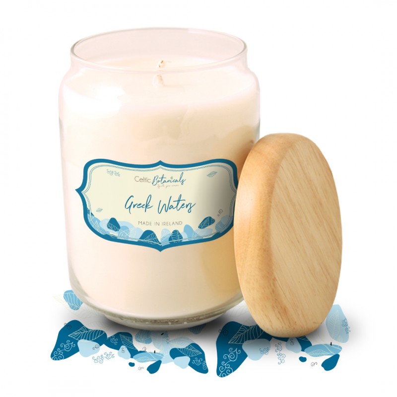 Experience the refreshing aroma of Greek Waters with our newest candle scent.