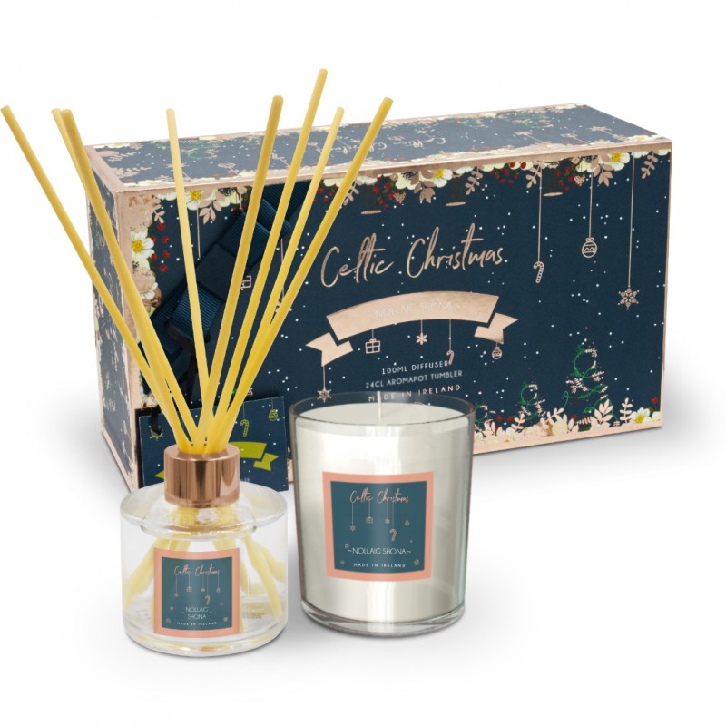 The beautifully crafted candle, create a warm and inviting ambiance in any room with their delightful blend of vanilla, nutmeg and log fire. The matching fragrance reed diffuser gently releases the enchanting scent into the air, creating a relaxing and welcoming atmosphere that will transport you to the heart of an Irish Christmas.